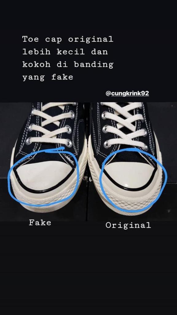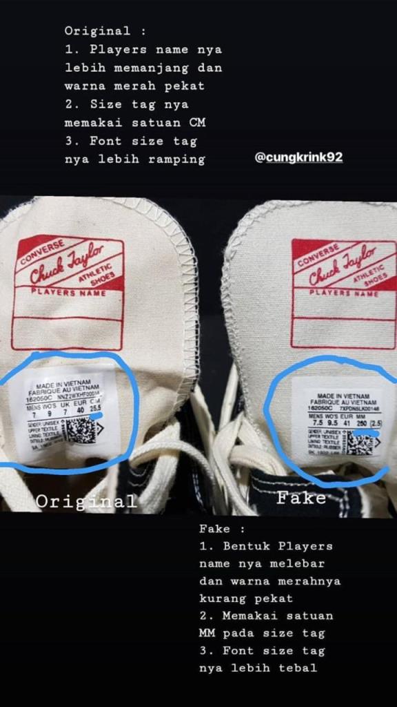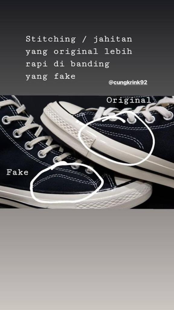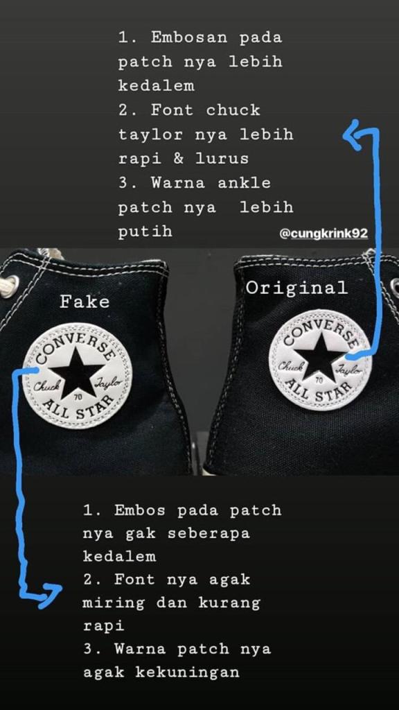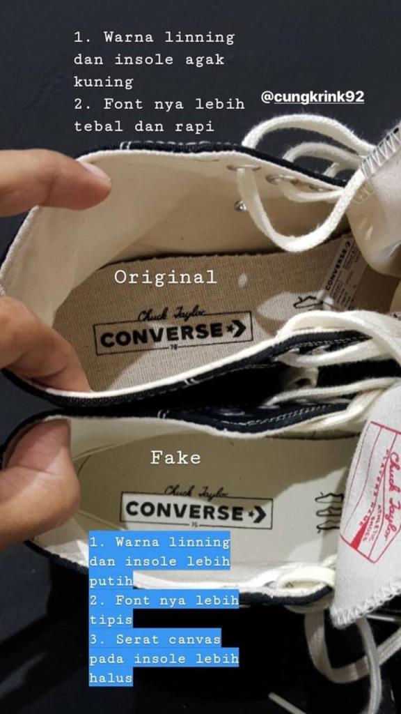 Yak karena kita menganut pasar bebas jadi banyak penjual penjual nakal yang meraup keuntungan dari penjualan barang palsu, memang sah sah saja kalo menjual tapi dengan membeli barang kawe, Anda sama saja tidak menghargai seni dari sepatu tersebut, jadiii gua mau jelasin nih disini bedanya kawe dan ori sepatu converse dari sisi pandang gua..